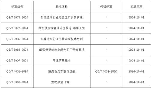 近日,工業(yè)和信息化部科技司發(fā)布2024年第4號(hào)公告,批準(zhǔn)發(fā)布454項(xiàng)行業(yè)標(biāo)準(zhǔn)、3項(xiàng)行業(yè)標(biāo)準(zhǔn)修改單、6項(xiàng)行業(yè)標(biāo)準(zhǔn)外文版。其中包括《制漿造紙行業(yè)綠色工廠評(píng)價(jià)要求》等7項(xiàng)造紙領(lǐng)域行業(yè)標(biāo)準(zhǔn),具體信息如下。