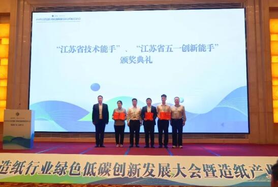 金東紙業(江蘇)股份有限公司朱皓(江蘇輝源)榮獲了“江蘇省技術能手”、“江蘇省五一創新能手”的榮譽稱號,由張笑如代為領獎。