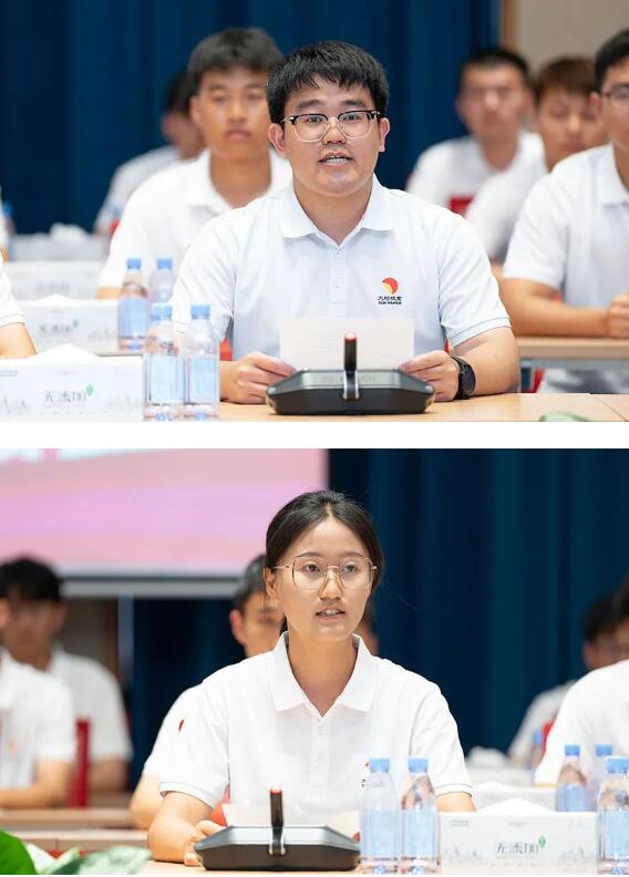 新入職大學生代表武默儒和馮蕭夢同學在發言中講到,成為一名“太陽人”感到十分光榮與自豪,并表示自己會找準定位,盡快完成角色轉換,繼承和發揚前輩們的寶貴精神品格,以飽滿的熱情和高昂的斗志投入到工作中,爭取為公司的可持續發展多做貢獻,與公司同舟共濟、攜手并進,共同書寫更加輝煌的美好未來。