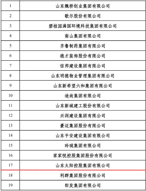 7月26日,2024山東民營企業(yè)百強(qiáng)系列榜單發(fā)布暨“魯商回家鄉(xiāng)”活動在濱州市博興縣舉行。會上,發(fā)布了“2024山東民營企業(yè)200強(qiáng)”、“2024山東民營企業(yè)創(chuàng)新100強(qiáng)”、“2024山東民營企業(yè)吸納就業(yè)100強(qiáng)”榜單。公司控股股東山東太陽控股集團(tuán)有限公司憑借過硬的綜合實(shí)力,位列2024山東民營企業(yè)200強(qiáng)第19位,2024山東民營企業(yè)創(chuàng)新100強(qiáng)第31位,2024山東民營企業(yè)吸納就業(yè)100強(qiáng)第17位。