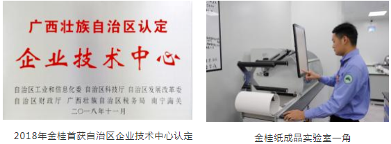 按照清潔生產“節能、降耗、減污、增效”的工作目標和要求,金桂對生產工藝、資源利用方式等進行技術改造,全面提升資源利用率,最大限度地減少污染物排放量,公司清潔生產水平不斷提升,在資源綜合利用、生產工藝技術與設備、生產管理水平、綜合利用措施等方面取得的效果明顯,生產過程的環境管理水平提高,起到了推動工業綠色發展轉型的積極示范作用。 2024年自治區企業技術中心評價優秀 2024年12月18日,廣西壯族自治區工業和信息化廳公布了2024年自治區企業技術中心評價結果的通知,符合此次評價年限的自治區企業技術中心共有237家,在提交評價材料的201家企業中,28家獲評優秀,134家獲評良好,39家獲評基本合格,廣西金桂漿紙業有限公司以“優秀”成績通過年度評價。