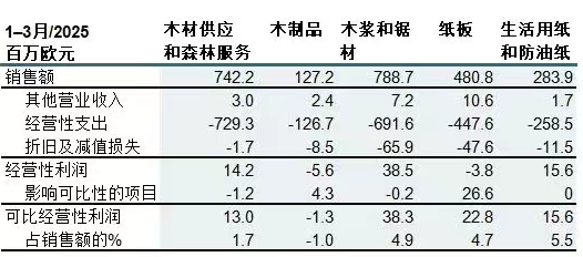 總裁與首席執(zhí)行官何亦凱(Ilkka Hämälä): 與去年一樣,2025 年第一季度面臨的情況是需求低迷和財(cái)務(wù)業(yè)績疲軟。與 2024 年第一季度相比,可比性利潤有所改善,主要是由于去年同期受到政治罷工的影響。 業(yè)務(wù)領(lǐng)域的市場前景與之前的報(bào)告一致。木材供應(yīng)正按計(jì)劃推進(jìn),價(jià)格水平略有上升,而木制品的需求并未顯示出建筑業(yè)復(fù)蘇的跡象。市場對(duì)單板層積材(Kerto® LVL) 的需求保持較好水平,鋸材價(jià)格在第一季度有所上漲。 木漿業(yè)務(wù)的市場發(fā)展受到中國經(jīng)濟(jì)不確定性和桉木漿產(chǎn)能增加的影響。不過,第一季度中國和歐洲市場的價(jià)格指數(shù)都略有上升。 折疊紙板市場繼續(xù)受到亞洲紙板生產(chǎn)商同等品質(zhì)的紙板產(chǎn)能嚴(yán)重過剩的干擾。涂布牛卡的市場情況正常。美國在報(bào)告期后宣布的關(guān)稅措施給交貨預(yù)測帶來了不確定性。生活用紙和防油紙的市場保持穩(wěn)定。 芬林集團(tuán)正在實(shí)施的開發(fā)投資項(xiàng)目正在按計(jì)劃取得進(jìn)展。芬蘭艾內(nèi)科斯基(Äänekoski) Kerto LVL 工廠已開始安裝設(shè)備,并將在一年內(nèi)開始試運(yùn)行。瑞典瑪麗斯塔德(Mariestad) 生活用紙廠投資項(xiàng)目的主要設(shè)備安裝工作正在進(jìn)行,第二季度將依托現(xiàn)有生產(chǎn)線進(jìn)行分切產(chǎn)線和自動(dòng)化倉庫的試運(yùn)行。艾內(nèi)科斯基的木質(zhì)素示范工廠的建設(shè)正在進(jìn)行中,位于勞馬(Rauma)的碳捕集示范工廠的調(diào)試準(zhǔn)備工作也在進(jìn)行中。關(guān)于新產(chǎn)品投資項(xiàng)目,前期工程在按計(jì)劃推進(jìn): MuotoTM 模塑纖維包裝示范工廠的產(chǎn)品現(xiàn)已在市場上銷售,KuuraTM 紡織纖維的工業(yè)化生產(chǎn)前期工程已經(jīng)啟動(dòng)。 除進(jìn)行一系列開發(fā)投資外,芬林集團(tuán)還須確保其現(xiàn)有工廠的競爭力。集團(tuán)旗下工廠的維保和改造工作是基于為每個(gè)工廠制定的長期生命周期計(jì)劃。辛佩萊(Simpele)紙板廠正在實(shí)施一項(xiàng)計(jì)劃中的發(fā)展項(xiàng)目,其第一階段包括生產(chǎn)線涂布段的更新。這項(xiàng)投資價(jià)值約為 6000萬歐元,預(yù)計(jì)將于 2025 年下半年完成。 克勞紹(Kreuzau)和曼塔(Mänttä)生活用紙廠已啟動(dòng)變革談判,以提高工廠生產(chǎn)流程的效率,并在生命周期結(jié)束時(shí)關(guān)閉一些相關(guān)的產(chǎn)線。 芬林紙板決定關(guān)閉塔科紙板廠,相關(guān)產(chǎn)品的生產(chǎn)已經(jīng)或?qū)⒁D(zhuǎn)移到其他工廠。同時(shí)決定對(duì)基洛紙板廠采取提高效率的措施。 根據(jù)上一季度做出的決定,蘇拉赫蒂(Suolahti)樺木膠合板工廠在本季度末停止生產(chǎn)。 全球?qū)α謽I(yè)產(chǎn)品需求的增長趨勢仍在繼續(xù),林業(yè)和森林工業(yè)對(duì)芬蘭社會(huì)的重要性依然不減。盡管近期全球政治動(dòng)蕩,經(jīng)濟(jì)形勢不明朗,但芬蘭開展盈利性業(yè)務(wù)的條件依然良好。 芬林集團(tuán)的股權(quán)比率高達(dá) 57%,凈負(fù)債率約為 20%。我們已經(jīng)進(jìn)行了多項(xiàng)投資,以加強(qiáng)我們的競爭力,我們的發(fā)展組合包括許多項(xiàng)目,以確保提升當(dāng)前業(yè)務(wù)水平,以及擴(kuò)大芬林集團(tuán)的產(chǎn)品組合。我們的目標(biāo)是提高產(chǎn)品附加值,取代化石原料。芬林集團(tuán)未來的選擇將在其股東戰(zhàn)略的指導(dǎo)下,致力于為所有股東的森林資產(chǎn)創(chuàng)造價(jià)值。 今年二月,芬林控股集團(tuán)公司董事會(huì)任命了下一任芬林集團(tuán)總裁兼首席執(zhí)行官,他將于2025年7月1日上任。我深信,作為全球林業(yè)的重要參與者,芬林集團(tuán)及其母公司未來將會(huì)取得成功。成功的基礎(chǔ)是堅(jiān)持不懈和系統(tǒng)化的工作,而我們的股權(quán)基礎(chǔ)為此提供了絕佳的機(jī)會(huì)。 在我任內(nèi)所發(fā)布最后一期財(cái)報(bào)的結(jié)尾,我要感謝我們所有的林業(yè)主股東和集團(tuán)其他事業(yè)部的股東,感謝你們的信任與合作。我還要感謝許多利益相關(guān)方代表,感謝他們富有成效的討論和反饋,鼓勵(lì)我和我們的組織在持續(xù)提升的道路上不斷前進(jìn)。 關(guān)鍵數(shù)據(jù)