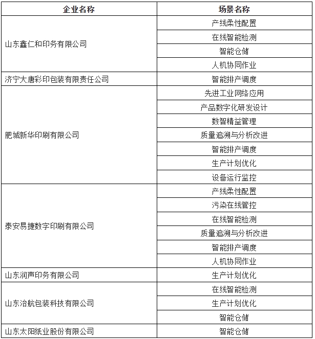 同步發(fā)布的還有省級智能制造優(yōu)秀場景名單,其中涉及到印刷包裝造紙企業(yè)的場景也有多個,具體如下: