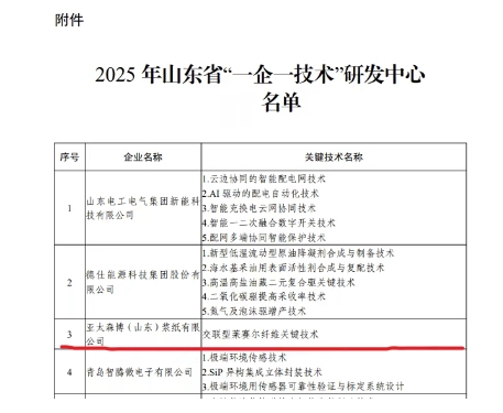9月2日,山東省工業(yè)和信息化廳發(fā)布2025年山東省“一企一技術(shù)”研發(fā)中心名單,亞太森博(山東)漿紙有限公司提報(bào)的“交聯(lián)型萊賽爾纖維關(guān)鍵技術(shù) 一企一技術(shù)研發(fā)中心”成功通過認(rèn)定,這是對企業(yè)技術(shù)創(chuàng)新能力和市場競爭力的一種權(quán)威認(rèn)證。