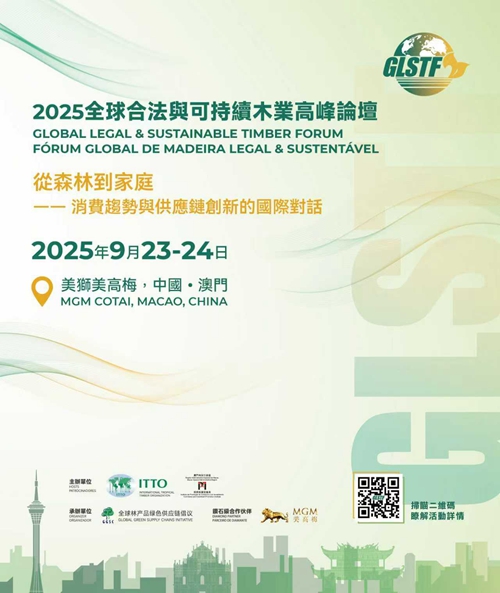 “2025全球合法與可持續木業高峰論壇(GLSTF 2025)”將于9月23至24日在澳門美獅美高梅舉行,以“從森林到家庭—消費趨勢與供應鏈創新的國際對話”為主題,規劃了會議、圓桌對話會、展覽、B2B商務對接和首發等近20項多元活動,預計吸引全球超過40個國家的林木家居產業關鍵參與方匯聚澳門開展高質量交流與合作。GLSTF2025由澳門特別行政區招商投資促進局(IPIM)和國際熱帶木材組織(ITTO)共同主辦,并由全球林產品綠色供應鏈倡議(GGSC)秘書處作為承辦單位,美高梅作為“鉆石級合作伙伴”提供支持。