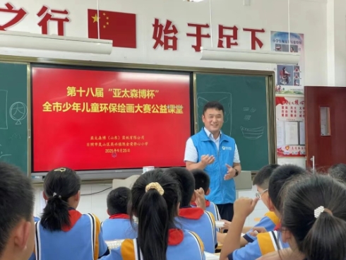 9月25日下午,亞太森博(山東)漿紙有限公司文化紙事業部、公司事務部相關人員來到嵐山區陳金榮僑心小學,為該校捐贈復印紙,同時開展第十八屆“亞太森博杯”全市少年兒童環保繪畫大賽公益課堂活動,以實際行動推動少年兒童的環保意識提高與校企共榮發展。本次活動是亞太森博踐行集團“付出越多,擁有越多”2025 Founder’s Day系列活動之一,也是校企共建企業社會責任活動模式的典型代表。日照市僑聯文化交流部部長張守波、嵐山區僑聯主席安盛傳參加活動。