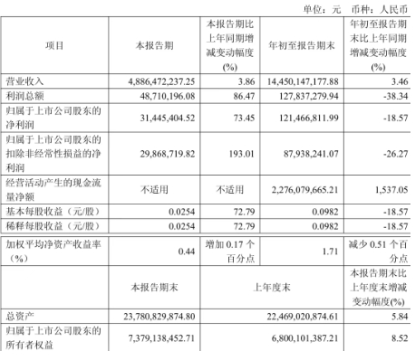仙鶴股份(603733) 公司營業(yè)總收入90.63億元,同比上升24.8%,歸母凈利潤7.78億元,同比下降4.77%。