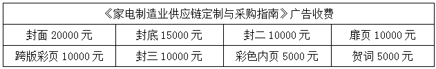 2、中國家電技術論壇新品演講:20.000元/15分鐘。 組委會負責安排場地、桌椅、音響及麥克風、投影儀、筆、紙等,協助組織聽眾。 3、會刊《家電制造業供應鏈定制與采購指南》廣告: