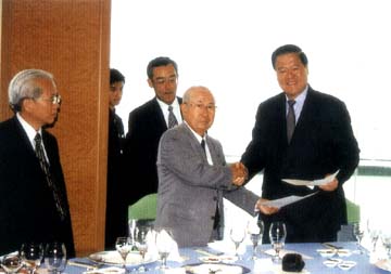 蘇州廠區羅聰良副董事長、蔡清長總經理、金東紙業許昭宏副董事長、吳省芳總經理等參加了簽約儀式。晚上,黃志源總裁宴請了日方客人,席間氣氛融洽,雙方互贈禮品。