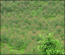 桉樹,俗稱洋草果樹。云南的桉樹品種有藍桉,大葉桉、小葉桉、赤桉等。其中藍桉樹是用來提取桉葉油的主要品種。桉葉油含桉葉醇,為無色或淡黃色液體,具有刺激性清涼香味,主要用于牙膏、漱口劑、食品及醫(yī)藥等方面。 云南省的自然地理環(huán)境適宜桉樹的生長,所以全省都廣泛種植了桉樹,云南省出產(chǎn)的桉葉油質(zhì)優(yōu)量多,主要供應(yīng)國內(nèi)市場。