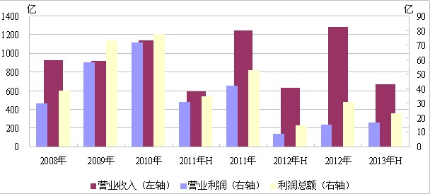 2008~2013年上半年樣本企業(yè)收入及利潤(rùn)情況