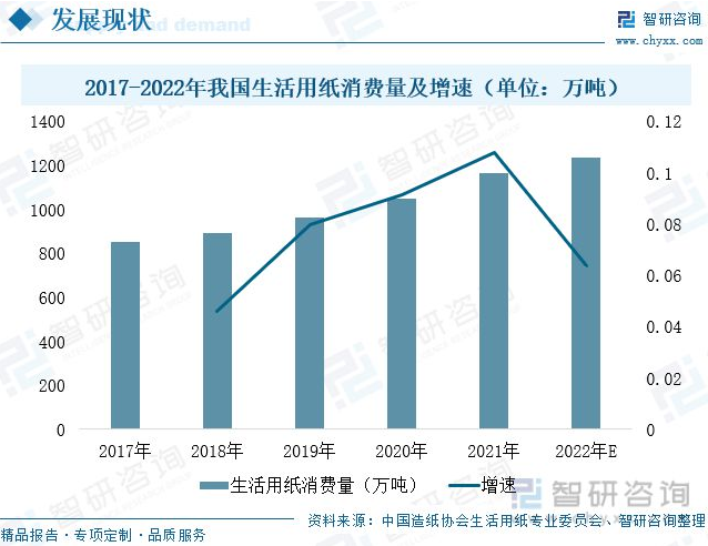 生活用紙是消費量巨大的日用消費品,隨著我國經(jīng)濟發(fā)展水平和人民生活水平日益提高,全國各地區(qū)對生活用紙的消費量都呈穩(wěn)定增長態(tài)勢。數(shù)據(jù)顯示:2021年我國生活用紙消費量達到1162萬噸,同比增長10.77%,國內(nèi)生活用紙市場規(guī)模約1406.6億元,是全球最大的生活用紙消費國。隨著居民生活水平不斷提升以及消費者健康衛(wèi)生意識不斷增強,2022年生活用紙消費量將延續(xù)增長態(tài)勢,達到1236萬噸,這將進一步拉動造紙設(shè)備需求上漲。同時,隨著人們對生活用紙質(zhì)量要求越來越高,使得造紙行業(yè)對造紙設(shè)備技術(shù)要求逐步提升,也將進一步推動造紙設(shè)備升級轉(zhuǎn)型,行業(yè)發(fā)展?jié)摿^大。